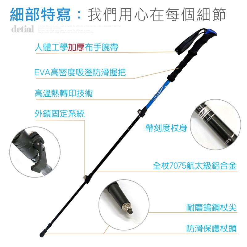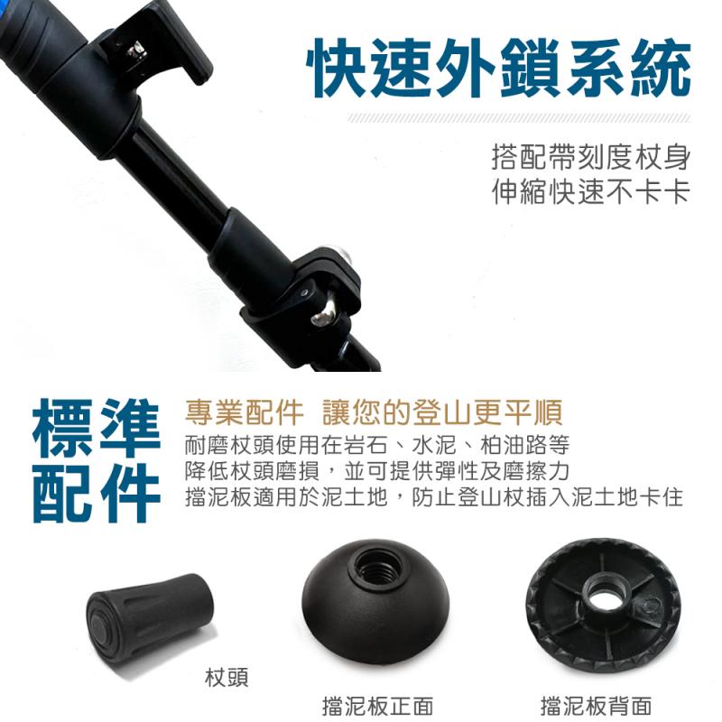 - ◆外鎖式調節,有別於傳統登山杖,更方便快速的調整長度