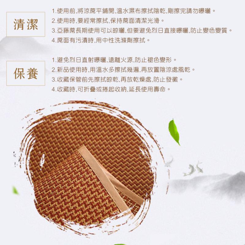 耐用:亞藤的強韌性和高透氣和散熱性更有藤類的特有韌性睡起來涼爽且更耐用。