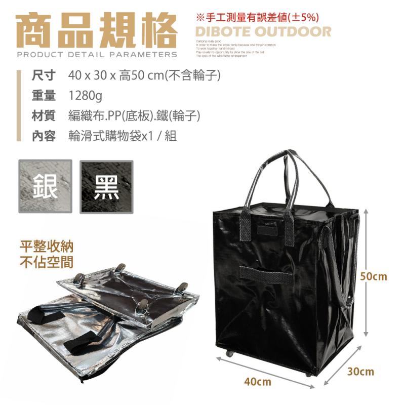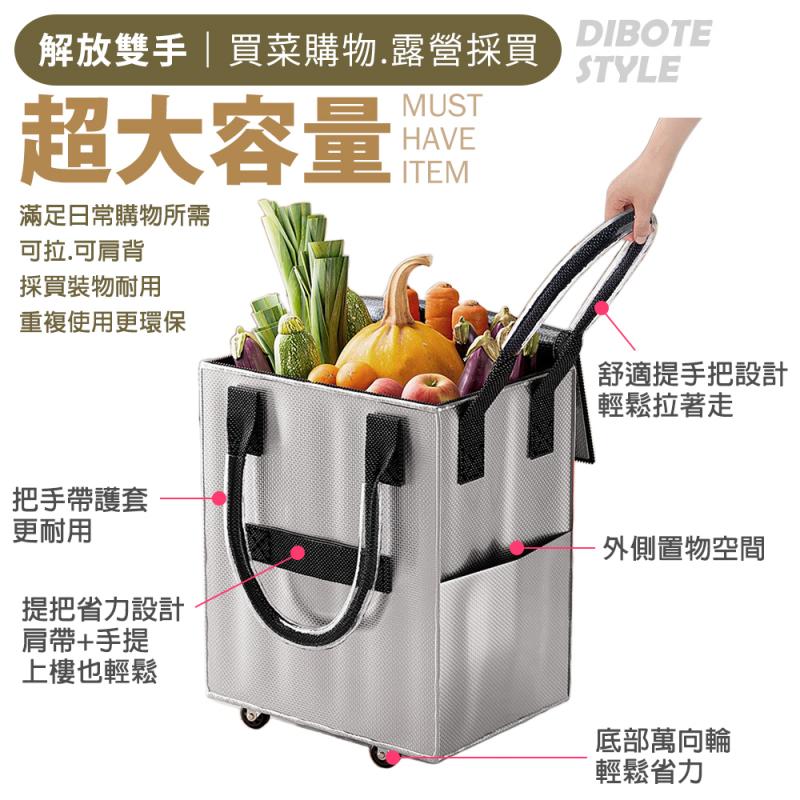 大容量滑輪折疊買菜車購物袋 (黑/白) 浩肯包平替 購物車.露營拉車