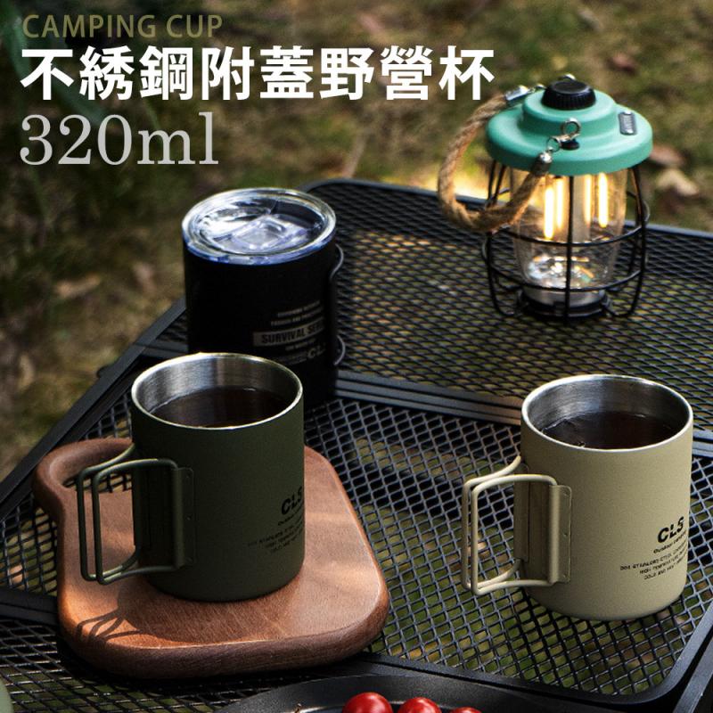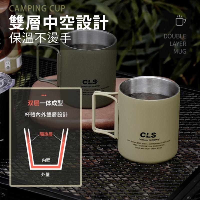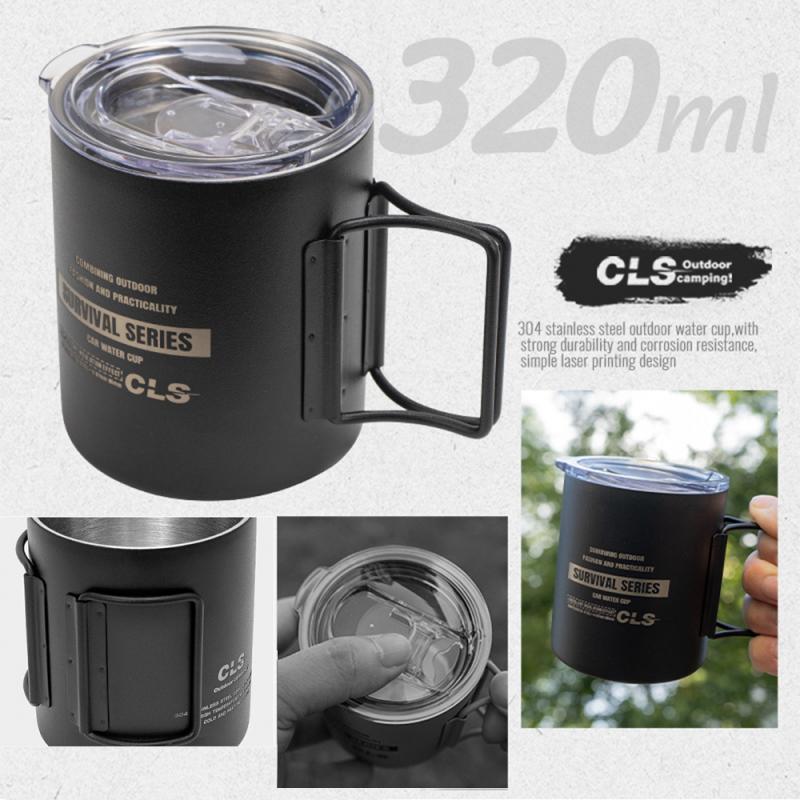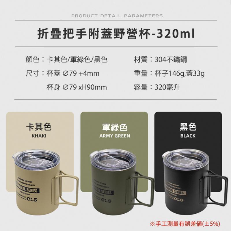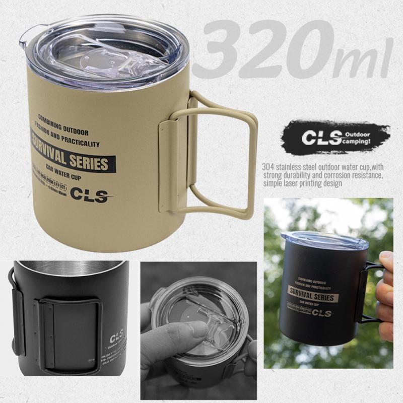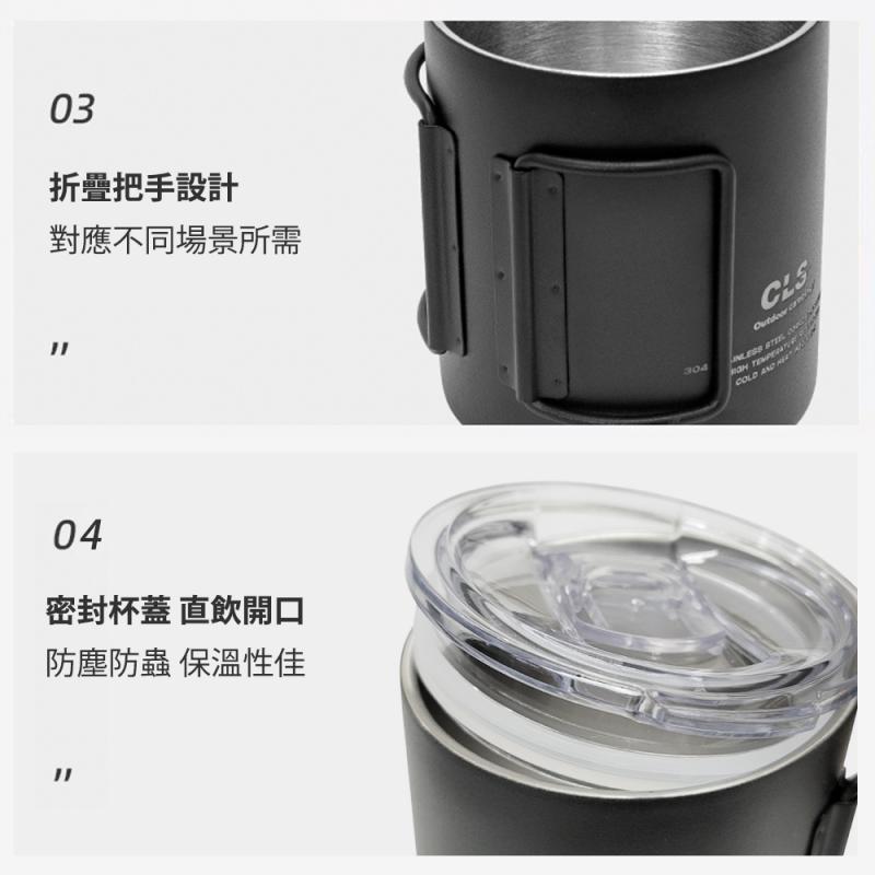 【CLS】折疊把手附蓋304不鏽鋼野營杯 (320ml)