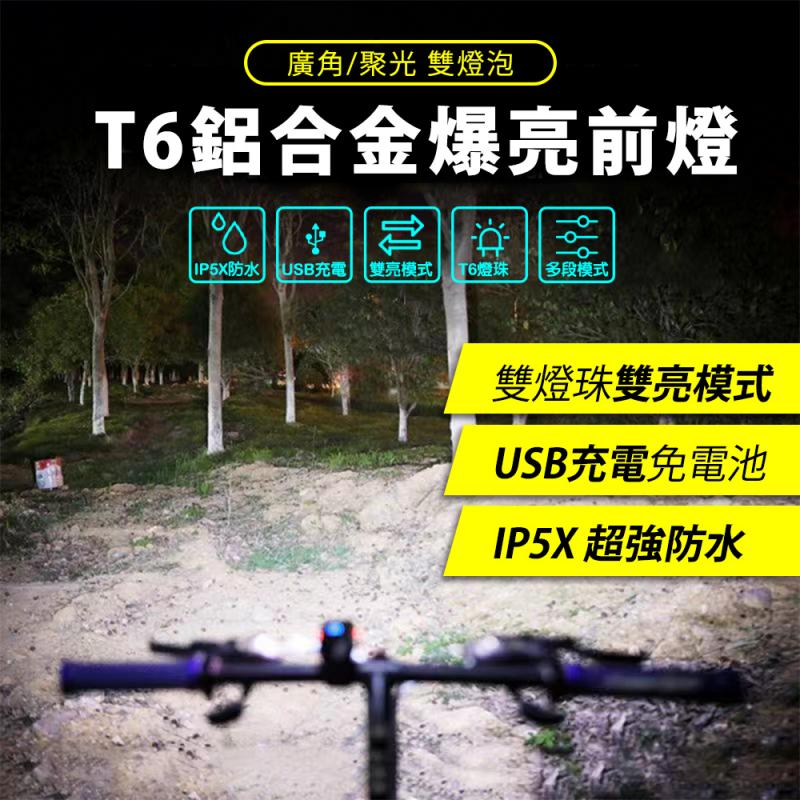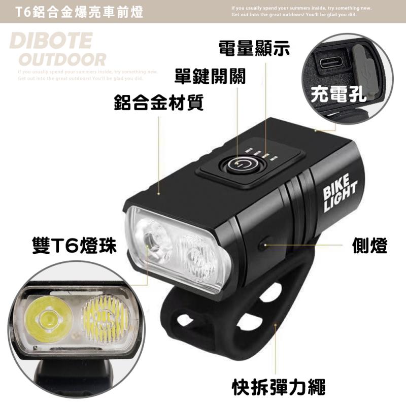 【迪伯特DIBOTE】 T6爆亮鋁合金自行車前燈 雙T6燈珠