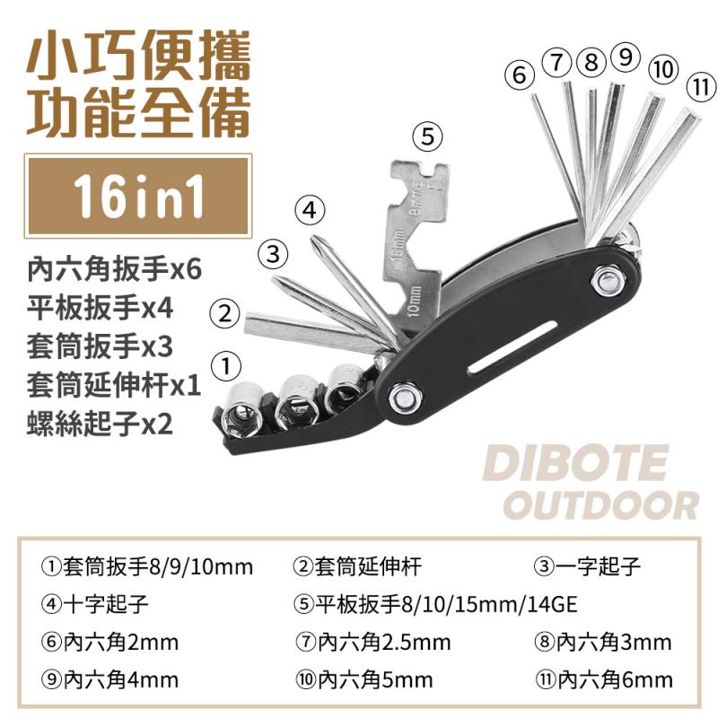 福利品【DIBOTE迪伯特】16合1多功能隨身工具組(729)