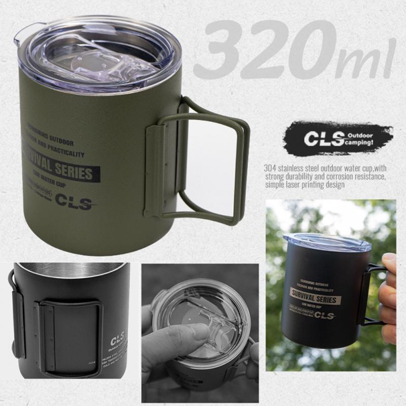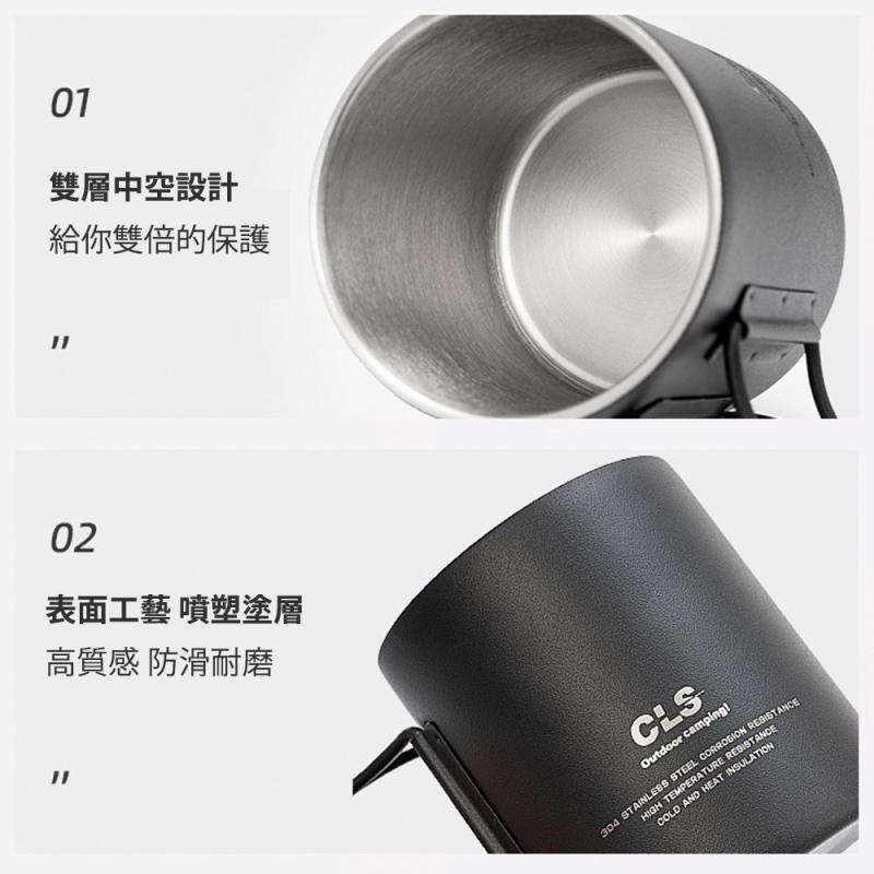 【CLS】折疊把手附蓋304不鏽鋼野營杯 (320ml)